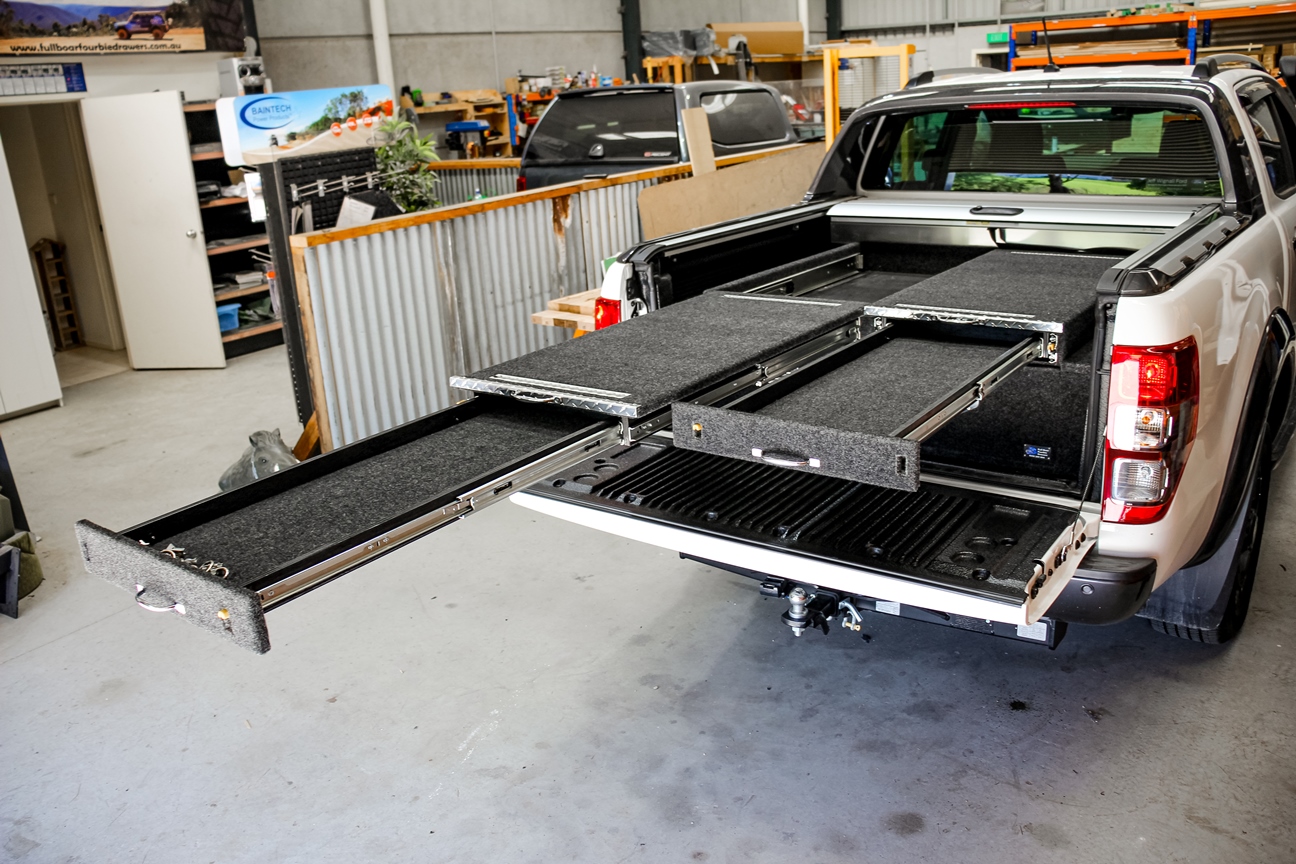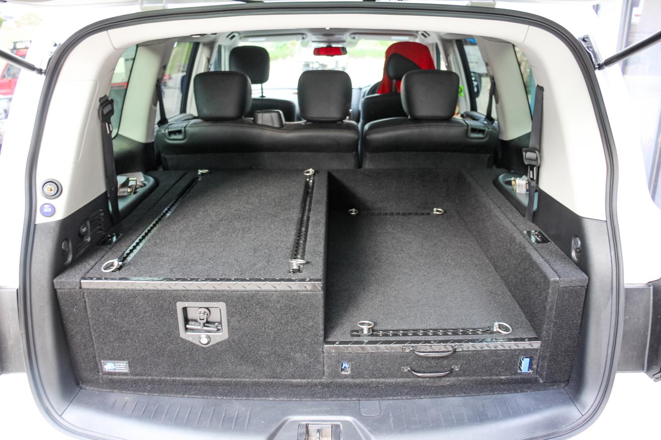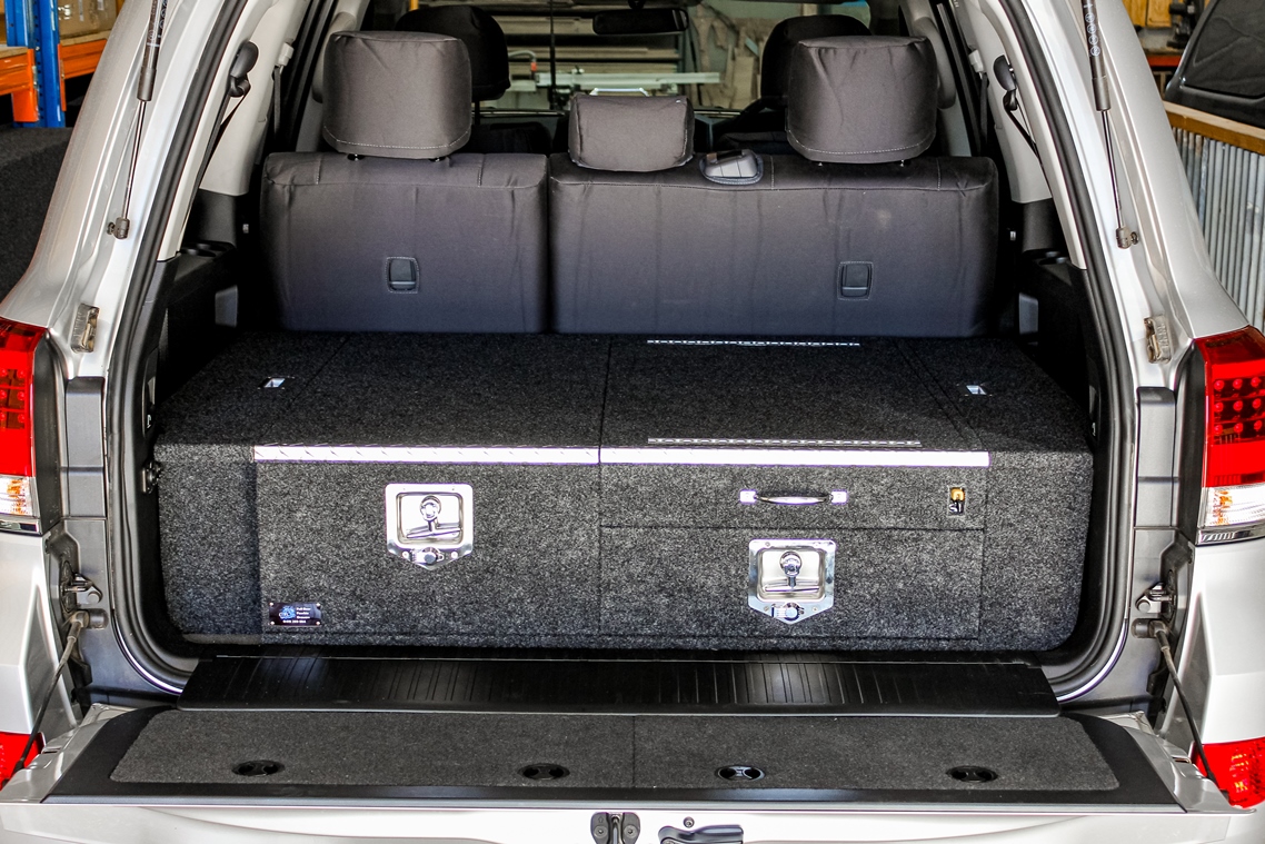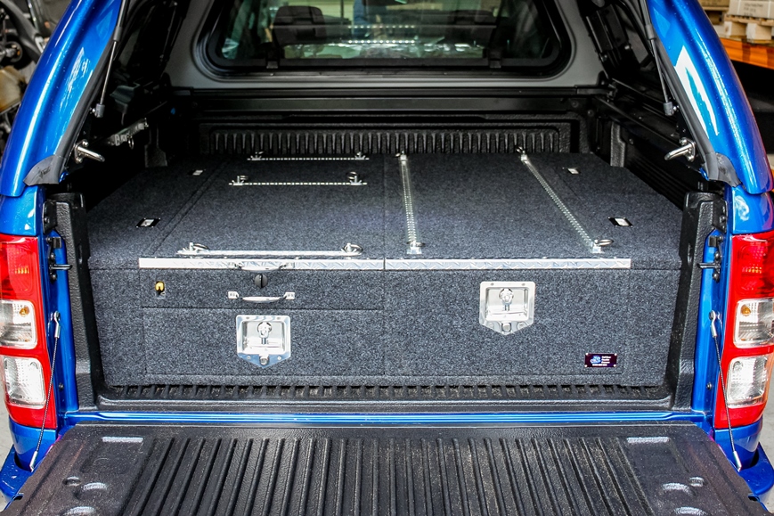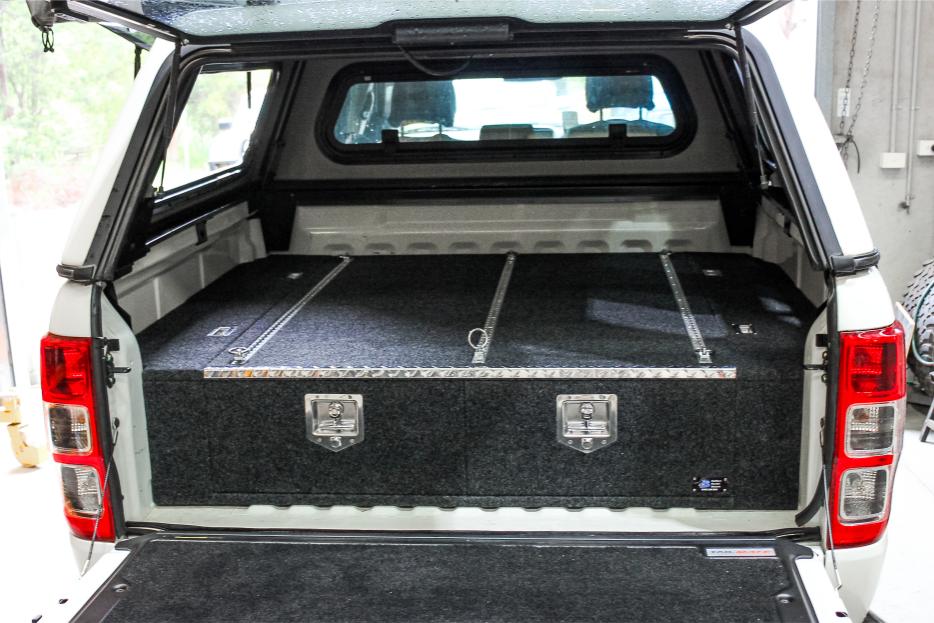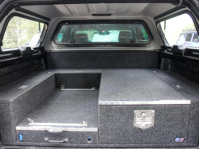 This is our standard 2 drawer system. can be made to suit any wagon or dual cab vehicle. Side wing kit is included. Width and depth vary to each specific vehicle.