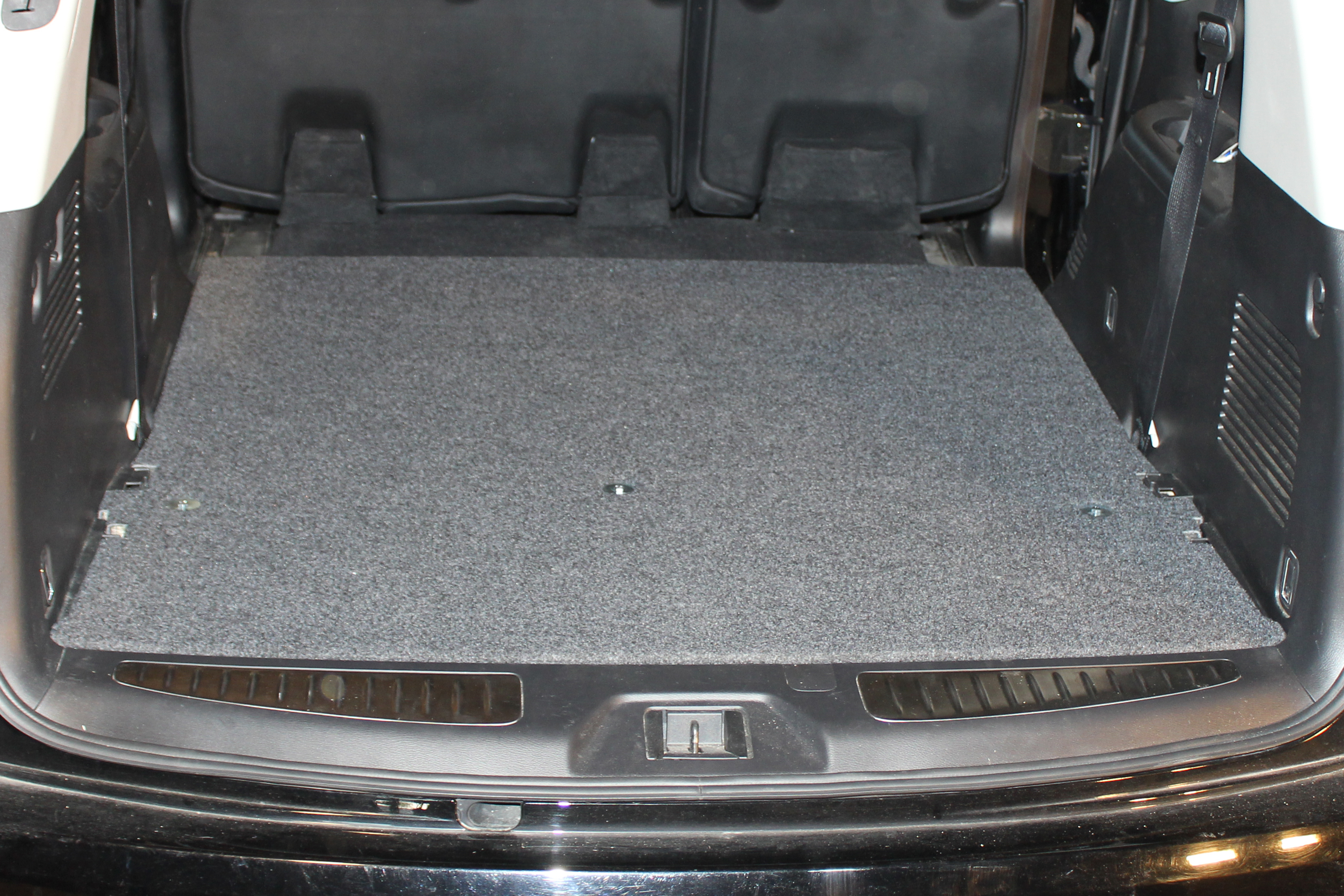 This false floor is to remove the third row seats, and create a level cargo area. A false floor is required to install drawers.
